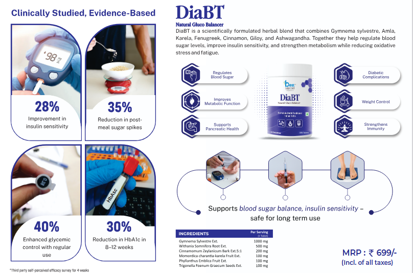 Momordica Charantia (Karela/Bitter Melon) Fruit Extract (100 mg) Acts as a natural glucose regulator.